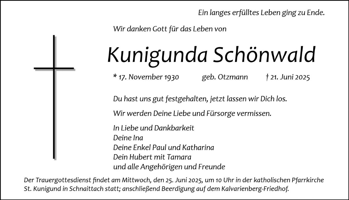 Kunigunda Schönwaldgestorben am 21. Juni 2025