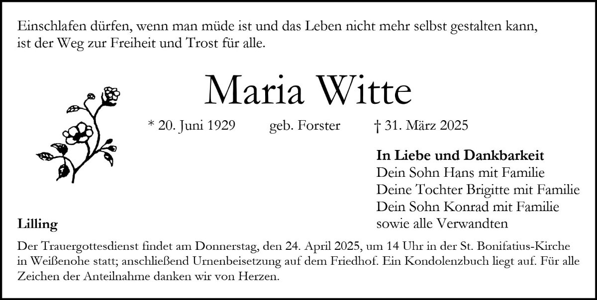 Maria Wittegestorben am 31. März 2025